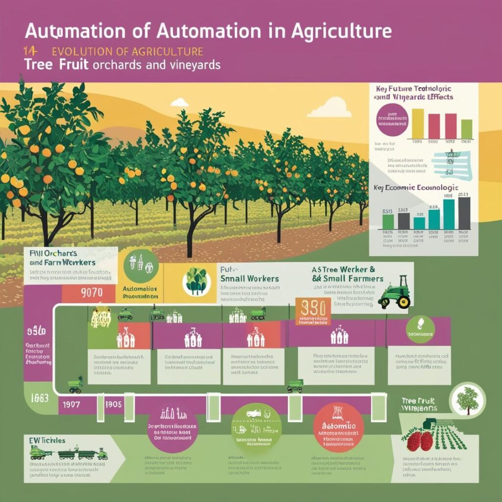 ### California's Agricultural Labor Transition California's history offers a prime example of the transition from labor abundance to scarcity. The state's farm labor supply was once bolstered by the Bracero program, which brought millions of Mexican workers into the U.S. between 1942 and 1964. When the program ended, the flow of undocumented workers from Mexico continued, keeping wages low and meeting the labor demand for fruit and vineyard work. Efforts to curb this influx, like the Immigration Reform and Control Act of 1986, aimed to legalize existing undocumented workers while preventing further illegal immigration. However, concerns about labor shortages persisted. More recently, anecdotal and research-based evidence suggests that farm labor scarcity is indeed becoming a reality, especially as the workforce ages and fewer young people pursue farm work. ### Social Impacts of Automation As automation becomes more prevalent, its social implications come to the fore. While adopting machines like robotic fruit pickers may reduce labor costs for farmers, it also raises concerns about job displacement. In regions where agricultural work provides a substantial portion of employment, this shift could lead to economic challenges. However, in labor-scarce environments, automation could be beneficial to workers and society. For example, robots could alleviate physically demanding tasks, improve working conditions, and enable workers to shift to more skilled positions overseeing these machines. The key is finding a balance that supports technological adoption without undermining the social fabric of rural communities. #### Global Perspectives on Mechanization The effects of agricultural mechanization vary globally. In some places, like Bangladesh, mechanization has been associated with higher wages and increased labor demand due to scale effects. Conversely, in countries like Kenya and Ethiopia, tractor adoption has displaced farm workers, demonstrating that the impact of automation depends on local economic conditions, land availability, and market integration. ### Future of Automation: Robotic Harvesting and Beyond The future of agricultural automation may involve sophisticated robotic systems operated by highly skilled personnel. Such advancements could revolutionize the farming of delicate crops like peaches and grapes, but only if economic conditions favor their widespread adoption. As wages rise and technology costs fall, farmers may increasingly turn to robots, fundamentally changing the nature of farm labor. ### Actionable Tips for Farmers Considering Automation - Evaluate Labor Costs: If wages are steadily increasing in your region, it might be time to explore labor-saving technology as a cost-effective alternative. - Research Available Technologies: Stay informed about the latest developments in robotic harvesting and other automated solutions that might suit your farm's specific needs. - Consider Financing Options: Since automation involves significant upfront investment, look into loan programs or grants that can make adopting new technology more feasible. - Train Workers for New Roles: As automation reduces manual tasks, workers can be retrained to manage, maintain, and operate automated systems, providing them with more skilled and higher-paying job opportunities.           ### Conclusion: Key Takeaways for Social Media and Infographics - Automation's history in agriculture involves a delicate balance between labor availability and technological adoption. - Economic theories, such as induced innovation, explain why technological advancements often occur when labor becomes costly. - California's shift from labor abundance to scarcity mirrors broader trends in farm labor markets. - Social impacts vary: while some regions see wage increases due to mechanization, others experience job displacement. - Future farming may heavily rely on skilled operators managing advanced robotics, reshaping the agricultural workforce.
