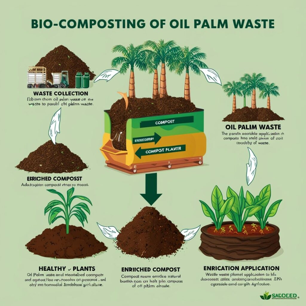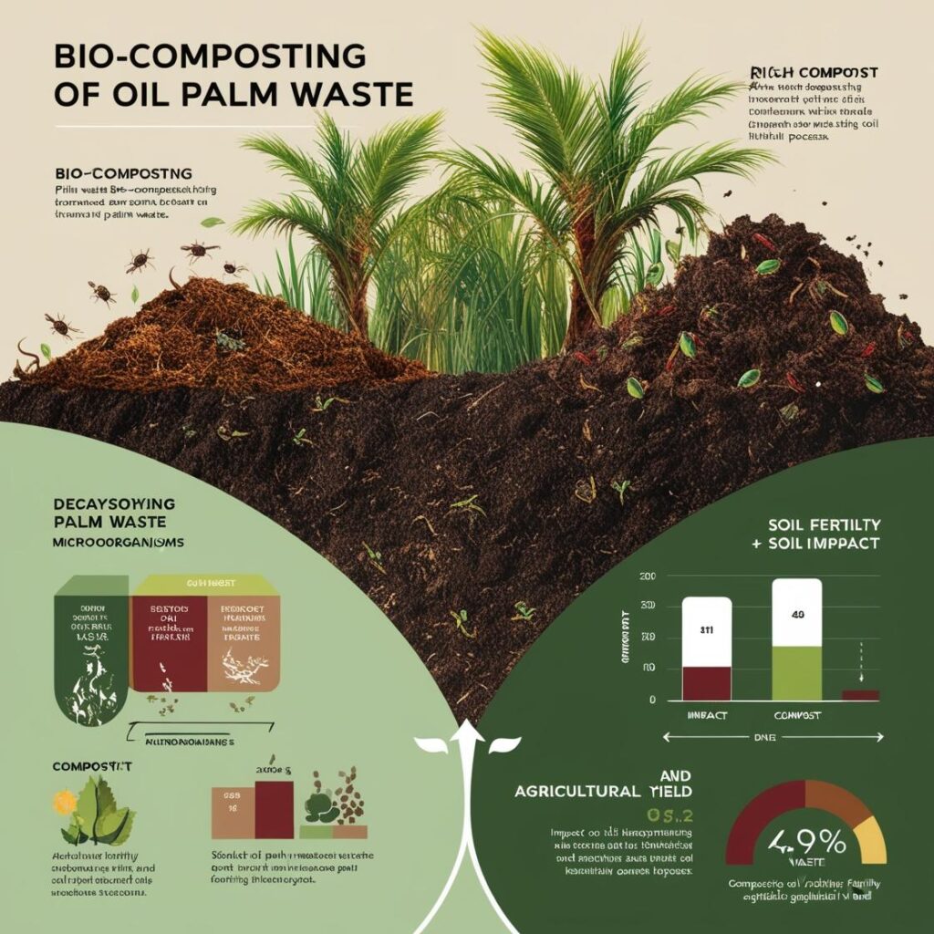 ### Introduction: What is Bio-Composting? Bio-composting, the process of breaking down organic matter into a nutrient-dense compost, is increasingly vital in organic farming. By converting agro-industrial waste—especially from oil palm cultivation—into bio-compost, this method provides essential nutrients that support healthy plant growth, enrich the soil, and even aid in erosion control. Through techniques such as aerated static piles, vermicomposting (using earthworms), and in-vessel composting, bio-composting turns waste into an asset. These processes rely on microbes, fungi, and sometimes worms to enhance decomposition, transforming raw plant material into beneficial nutrients for plants. ### Key Techniques in Oil Palm Waste Composting - Aerated Static Piles This technique involves creating large compost piles with proper ventilation to ensure aerobic conditions. Airflow through the pile minimizes odor, accelerates decomposition, and generates nutrient-rich compost in a relatively short time. - Vermicomposting with Earthworms Earthworms help break down organic matter quickly and enhance the quality of compost. They consume the waste, converting it into nutrient-rich castings, which are especially beneficial for soil structure and fertility. - In-Vessel Composting In-vessel composting is a contained, controlled method where organic matter is decomposed within a closed system. This technique can speed up the composting process and reduce the environmental impact by containing odors and emissions. - Windrow Composting This involves arranging waste in long rows and turning it periodically to ensure aeration. Windrow composting is effective for larger quantities of waste, promoting even decomposition across the pile. ### Benefits of Bio-Composting Oil Palm Waste Bio-composting offers multiple benefits that go beyond simple waste disposal. Here’s how it contributes to sustainable agriculture: - Soil Fertility Improvement: Bio-compost adds organic matter to the soil, which helps improve its structure, water-holding capacity, and nutrient content. - Increased Crop Yields: Studies show that bio-composting can increase crop yields by 10–20%, thanks to its nutrient-dense properties. - Cost-Effectiveness: Since bio-compost is created from renewable organic waste, it reduces dependence on synthetic fertilizers, which are costly and less environmentally friendly. - Reduction of Pathogens: During the composting process, high temperatures help kill pathogens and weed seeds, making it safer for agricultural use. - Environmental Benefits: Bio-composting significantly reduces landfill waste, lowers greenhouse gas emissions, and mitigates soil degradation associated with synthetic fertilizers. ### Sources of Bio-Compost in Oil Palm Agriculture A variety of oil palm by-products can be bio-composted to improve soil health. Key sources include: - Empty Fruit Bunches (EFB): These fibrous bunches can be composted or used as a substrate for mushroom cultivation. - Palm Press Fiber (PPF): PPF serves as a compost component and can also be used as fuel or animal feed. - Decanter Cake (DC): This solid residue, rich in nitrogen and potassium, can improve soil quality and function as a biofertilizer. - Palm Kernel Shells (PKS): Known for their low moisture content, PKS can be added to compost to improve texture or used as fuel. - Palm Oil Mill Effluent (POME): Though highly acidic, POME can be composted under controlled conditions to create organic soil conditioners. Waste ResidueUsesFronds, trunks, leavesMulching, moisture retention, roofing material, furniture productionEmpty Fruit Bunch (EFB)Compost, bio-fertilizer, mushroom substrate, raw material for productsPalm Press Fiber (PPF)Fuel, animal feed, fiber boards, composting materialDecanter Cake (DC)Soil amendment, animal feed, biofertilizer for vegetable gardeningPalm Kernel Cake (PKC)Animal feed, especially valuable due to high carbohydrate and protein contentShellsPrimarily used as fuelPalm Oil Mill Effluent (POME)Irrigation (requires treatment due to acidity) ### Practical Tips for Bio-Composting Oil Palm Waste - Balance the Carbon-to-Nitrogen (C) Ratio: Aim for a balanced mix of carbon-rich materials (e.g., dried leaves) and nitrogen-rich elements (e.g., fresh palm waste). This ratio optimizes the microbial activity that drives decomposition. - Regular Aeration: Turning the compost pile regularly keeps oxygen levels up, helping microbes break down the waste more effectively. - Maintain Moisture: Keeping the compost pile moist—but not waterlogged—promotes the right environment for microbial activity. - Additives for Faster Decomposition: Adding earthworms or specific fungi can accelerate the composting process, especially with oil palm by-products. - Consider In-Vessel Systems for Odor Control: For larger operations, in-vessel systems can contain odors and improve the efficiency of the composting process. ### Quick Summary for Social Media Content Creation - Intro: Bio-composting oil palm waste is a sustainable solution for agriculture. - Techniques: Methods like aerated static piles, vermicomposting, and in-vessel systems. - Benefits: Boosts soil fertility, reduces costs, and lowers environmental impact. - Sources of Compost: EFB, PPF, DC, PKS, and POME all contribute valuable nutrients. - Practical Tips: Keep the right Cratio, aerate regularly, and maintain moisture for optimal compost quality. By embracing bio-composting, the oil palm industry can turn waste into valuable organic fertilizer, supporting a more sustainable and productive agricultural future.