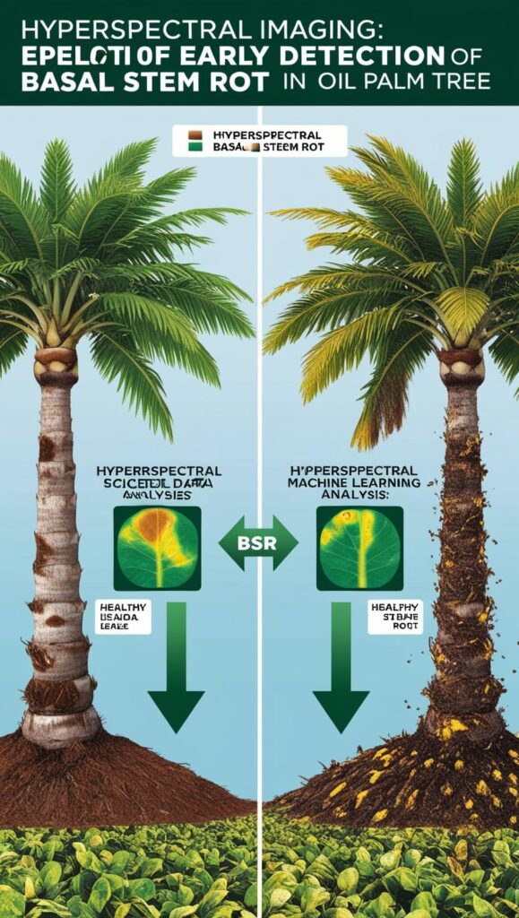 Introduction The battle against plant diseases in agriculture is ongoing, with devastating pathogens like Ganoderma boninense that impact oil palm plantations in Southeast Asia. This infection, causing Basal Stem Rot (BSR), costs the industry nearly $500 million annually. Early detection, especially when no visible symptoms are present, is critical. However, manual inspections are error-prone, and traditional lab methods are invasive. The study we’ll dive into here leverages hyperspectral imaging and machine learning (ML) as innovative tools to detect early-stage BSR in oil palms—without the need for visible symptoms or destructive testing. ### Understanding Basal Stem Rot (BSR) The Challenge of Early Detection Oil palm plantations are heavily impacted by BSR, a disease caused by Ganoderma boninense. Unfortunately, early symptoms are subtle or nonexistent, making visual detection difficult until the infection is advanced. This delay in detection can lead to massive economic losses. Traditional methods rely on lab testing, which involves collecting samples, potentially harming the plant, and taking time. Importance of Early Detection Detecting BSR early can allow plantation managers to prevent its spread. The challenge is finding reliable, non-invasive, and scalable detection methods that can be applied across vast plantation areas. With new technologies like hyperspectral imaging and ML, early identification is becoming more feasible, potentially reducing both crop losses and environmental impacts. ### Hyperspectral Imaging and Its Applications in Agriculture What is Hyperspectral Imaging? Hyperspectral imaging captures information across a wide range of wavelengths beyond the visible spectrum, providing detailed data on plant characteristics. Each pixel in a hyperspectral image contains a unique spectral signature, often referred to as a “cube,” which can be analyzed for plant health indicators. This technology is already being used in agriculture to assess crop conditions, detect water stress, and predict yields. Benefits in BSR Detection For BSR, hyperspectral imaging can detect changes in the Near-Infrared (NIR) spectrum, even before symptoms are visible. The study focused on oil palm seedlings, where the NIR spectrum proved essential in differentiating healthy plants from those infected with G. boninense. ### Machine Learning in Disease Detection Why Machine Learning? Machine learning algorithms can process the large datasets generated by hyperspectral imaging, identifying subtle differences between healthy and infected plants. With ML, we can develop predictive models to recognize infection patterns and improve detection accuracy. The study experimented with multiple classifiers, including Support Vector Machines (SVM), which achieved nearly perfect classification. Supervised vs. Unsupervised Learning ML algorithms fall into two main types: supervised (which require labeled datasets for training) and unsupervised (which find patterns without labeled data). This study primarily used supervised learning, applying labeled data from both healthy and infected plants. The SVM classifier, in particular, used specific NIR bands to classify infection status with 94.8% accuracy—strikingly high for early detection efforts. ### The Research Design and Methodology Greenhouse Setup The research was conducted in a controlled environment, the UPM Transgenic Greenhouse, which provided a stable climate ideal for studying seedlings. The conditions were meticulously managed to ensure consistent data quality across the study period, from January to June. Sample Preparation and Inoculation Researchers obtained 28 oil palm seedlings, 15 of which were inoculated with the G. boninense pathogen. After a month of acclimatization, the infected seedlings were analyzed using PCR (Polymerase Chain Reaction) tests to confirm infection. Hyperspectral images were then captured from these samples, focusing on NIR spectra for significant data on infection signs.