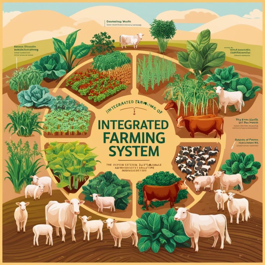 #### Key Components of IFS - Resource Utilization: By using farm-produced resources like crop residues and livestock by-products, IFS reduces reliance on external inputs and minimizes waste. - Mutual Support Between Enterprises: Each farm component supports the others—for example, crop residues can be used for animal feed, and livestock waste can be used as fertilizer. - Sustainability: IFS emphasizes soil fertility preservation, environmental protection, and social responsibility. ### Benefits of Implementing IFS IFS brings numerous advantages to farmers, especially in the context of small-scale and marginal farming: - Enhanced Productivity: By maximizing space and resources, IFS increases productivity per unit area, ensuring a higher economic yield. - Profitability: The system reduces production costs by utilizing farm waste and lessens reliance on market-bought inputs. - Environmental Health: IFS minimizes pollution by recycling farm waste and reduces the need for harmful chemicals. - Diverse Nutrition: With various farm products like vegetables, fish, and dairy, IFS supports a nutritionally rich diet for farm families. - Continuous Income: The diversified products from IFS generate income throughout the year, providing a financial safety net for farmers. ### Implementing Integrated Farming Systems To create a successful IFS, farmers must carefully assess local conditions and resources. Factors such as soil type, climate, labor availability, and financial resources will determine the optimal combination of enterprises on the farm. Here’s a closer look at some of the key considerations: - Soil and Climate: Choose farm enterprises based on local soil and climatic conditions to maximize productivity. - Resource Availability: Determine the availability of resources, including land, labor, and capital, to support the chosen enterprises. - Economic Viability: Ensure that each component is economically viable to maintain long-term sustainability. #### Practical Applications of IFS IFS can be implemented through diverse combinations of crops, livestock, aquaculture, and forestry, adapted to the specific needs of each farm: - Crop-Livestock Integration: This includes using crop residues as animal feed and livestock manure as fertilizer, enhancing nutrient cycles. - Aquaculture with Crop Production: Fish farming can be integrated with paddy fields, utilizing water resources effectively while producing fish as an additional income source. - Agroforestry: Integrating trees with crops helps improve soil structure, reduces erosion, and provides fodder, fuel, and timber. ### Goals and Objectives of IFS The overarching goal of IFS is to create a farming model that is economically viable and environmentally sustainable. Some primary objectives include: - Maximizing Yield: Enhance output from each farm component to ensure stable income levels. - Maintaining Ecosystem Balance: Foster a balanced ecosystem by incorporating natural pest control and crop rotations. - Reducing Chemical Dependency: Lower the use of synthetic fertilizers and pesticides to promote a healthier environment. ### Challenges and Considerations While IFS presents a viable option for sustainable agriculture, it does require certain knowledge and resources to be effective: - Knowledge and Skill Development: Farmers may need training on implementing IFS, as the approach requires an understanding of resource management and ecosystem interactions. - Initial Investment: Although IFS reduces long-term costs, the initial setup for integrating various systems may require capital investment. - Adaptability: IFS must be adapted to local contexts, as the effectiveness of the system can vary depending on regional conditions and resources. ### Summary for Creating Instagram Reels and Infographics To create engaging Instagram reels or infographics in Canva on IFS, focus on these key points: - Introduction to IFS: Explain how IFS promotes sustainability by integrating crops, livestock, and more. - IFS Benefits: Highlight increased productivity, profitability, and environmental benefits. - Examples of IFS Applications: Show examples of crop-livestock, aquaculture-crop integration, and agroforestry. - Goals and Objectives: Emphasize the sustainability and profitability aspects. - Challenges: Outline knowledge requirements and initial investments. By embracing Integrated Farming Systems, farmers can build resilient farms that not only support their livelihoods but also contribute to a more sustainable future for agriculture. The Integrated Farming System (IFS) is a holistic approach that combines various agricultural activities to maximize productivity, efficiency, and sustainability. This system involves the integration of crops, livestock, aquaculture, forestry, and other related enterprises to optimize resource utilization, reduce dependency on external inputs, and enhance farm income. ### Key Components of IFS: - Decision Factors for Farmers: Farmers select what crops and livestock to raise based on factors like climatic conditions, soil type, market demand, and available technology. Their choices also depend on social and economic conditions, farm size, and resource availability, ensuring minimal competition and maximum complementarity between enterprises. - Crops and Cropping Systems: Grain crops, oilseeds, vegetables, plantation crops, and root crops are chosen based on market demand, soil compatibility, and rainfall patterns. Cereal-based systems combined with livestock provide an efficient means of enhancing farm productivity. - Livestock: Animals like cows, poultry, sheep, and goats are integrated into the system. Livestock production complements crop farming by providing manure and utilizing crop by-products, stabilizing farm income. - Aquaculture and Fisheries: Integrating fish farming with crops, especially in rice-growing areas, stabilizes productivity. This component is more common in regions with sufficient water resources, contribu