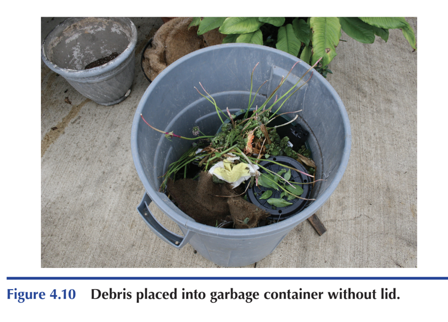 - Plant Debris Disposal: Always use garbage containers with tight-sealing lids. Plant debris left in open containers can attract pests, who will then move on to healthier plants. \n