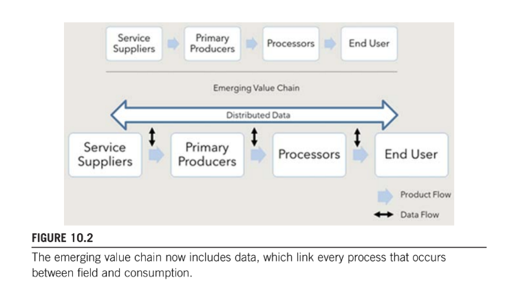 The traditional agricultural value chain has been transformed by the integration of data at every stage, linking field operations to consumption. This emerging value chain highlights the pivotal role of data ownership, control, and value in modern agriculture.