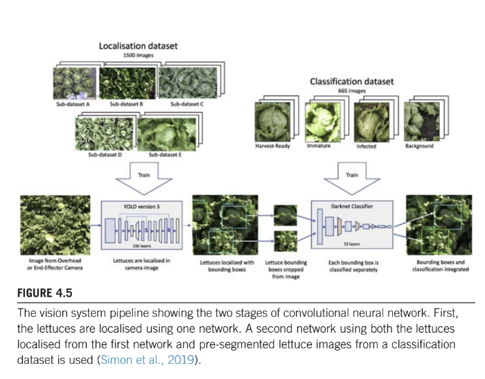 - Current systems merge hand-crafted features with neural network architectures, offering improved accuracy in challenging tasks like sweet pepper detection and broccoli harvesting. \n