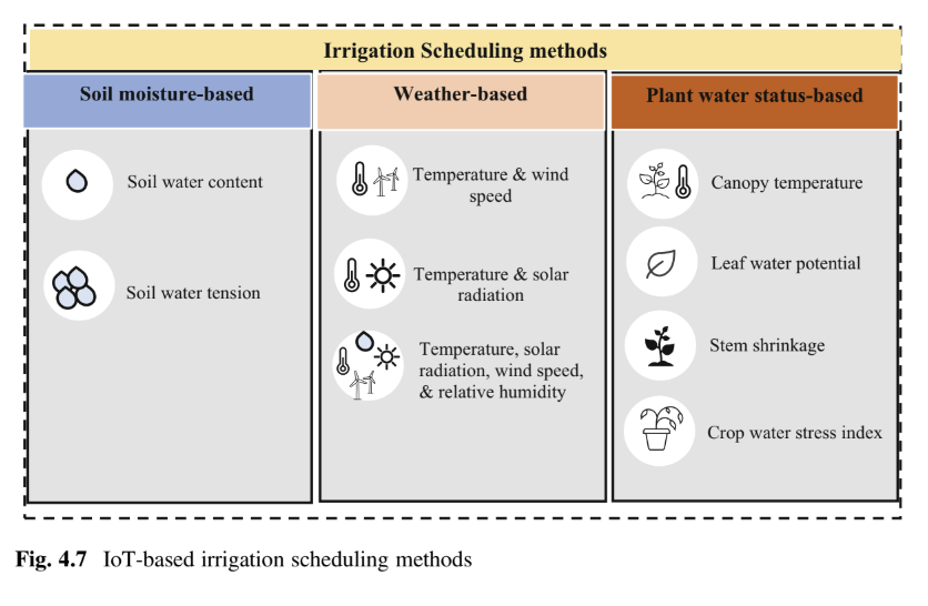 - Plant Water Status-Based Scheduling: This method measures plant physiological traits like transpiration and canopy temperature to assess plant water stress and needs. \n