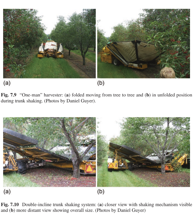 - Current Systems: Most mechanical harvesting of cherries uses trunk-shaking harvesters, specifically effective in tart cherry processing. \n\n\n\n