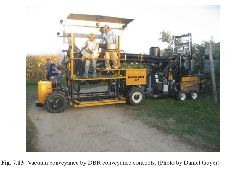 - This system uses padded, large-diameter tubing to gently suction fruit to a collection bin. Currently used in platforms like DBR for human-assisted harvesting, this method minimizes bruising and increases efficiency. \n