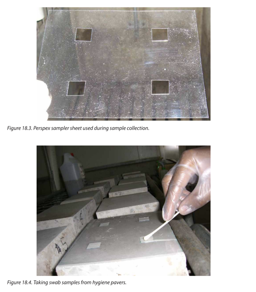 - Concrete ‘hygiene pavers’ were designed to mimic piggery floors and were coated with a pig manure-water mixture to replicate natural pen fouling. Following an 8-hour drying period, these pavers were subjected to various cleaning protocols, and bacterial load reductions were measured. \n\n\n\n