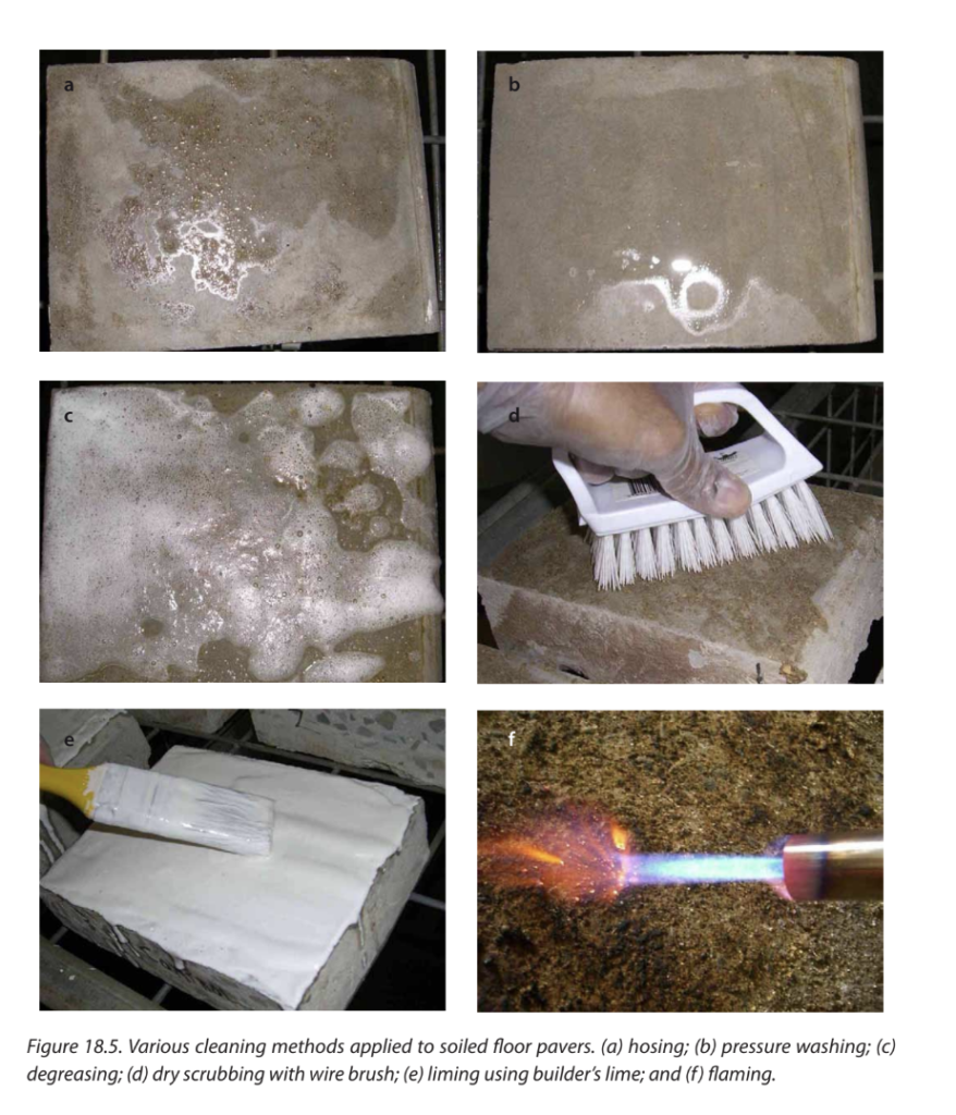\n\n\n\nThe document details various cleaning experiments on soiled floor pavers, specifically used in livestock housing, to assess the effectiveness of different methods like degreasing, hosing, pressure washing, dry scrubbing, flaming, and liming. The goal was to determine which cleaning method minimizes bacterial load most effectively under controlled conditions.