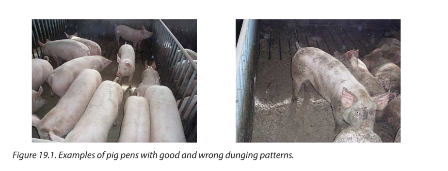 This passage discusses the management of hygiene conditions in Australian livestock buildings, particularly focusing on the dunging patterns of pigs and their relationship with pen design and management practices. Here\'s a breakdown of the key points: