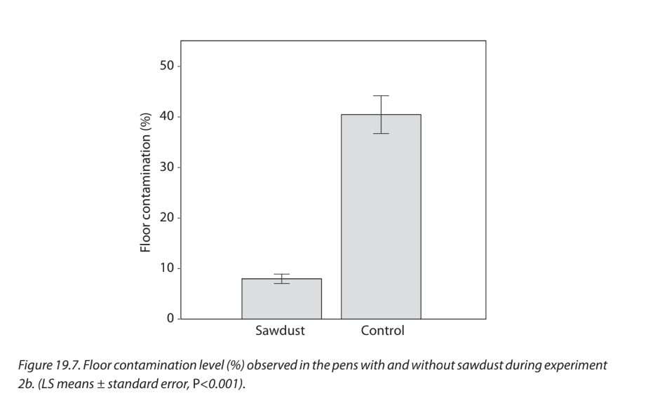 - In the second run, applying sawdust significantly reduced floor contamination (8% in treated vs. 40% in untreated pens), indicating its effectiveness as a management tool. However, it\'s suggested for preventative use rather than to resolve existing issues. \n