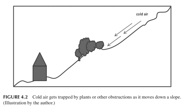 - Smart Slope Design: Use vegetation to either trap cold air downslope or keep it flowing away upslope. \n\n\n\n