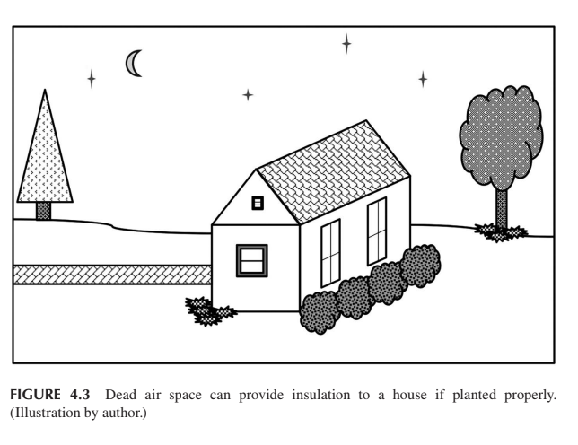 - Dead Air Space: Plant dense shrubbery about 12 inches from a building to create insulating "dead air" space, reducing heat transfer. \n\n\n\n