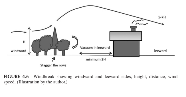 - A windbreak, also known as a shelterbelt, is a row of trees or shrubs planted perpendicular to the prevailing wind. These barriers are perfect for colder climates where winter winds cause significant heat loss. By blocking or slowing the wind, windbreaks help retain heat within the building. \n\n\n\n