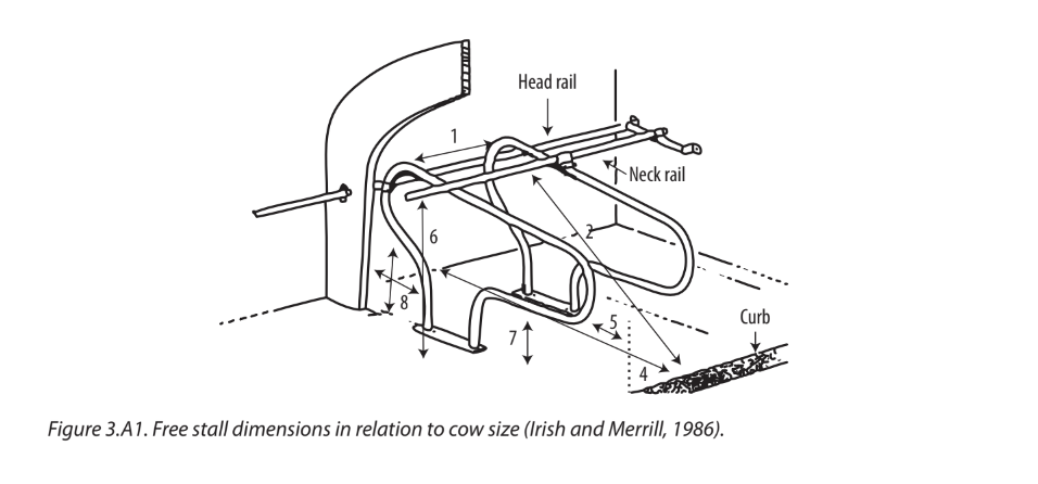 \n\n\n\nNeck and head rails in cubicles force cows to back out when standing up and ensure faeces are deposited in the alley rather than on the cubicle bed. These rails can obstruct natural motions and weight distribution, causing unwanted leg loading and abnormal behaviors, such as standing up with the front legs first. These problems are especially pronounced for large cows or when cubicle design does not meet recommended standards. High-quality deep straw or sand bedding, flexible separations, and sufficient cubicle dimensions improve comfort. The time taken to lie down, which is longer on concrete floors than at pasture and reduced by soft bedding, can indicate comfort levels. Abnormal lying down and standing up motions cause injuries and indicate reduced welfare.