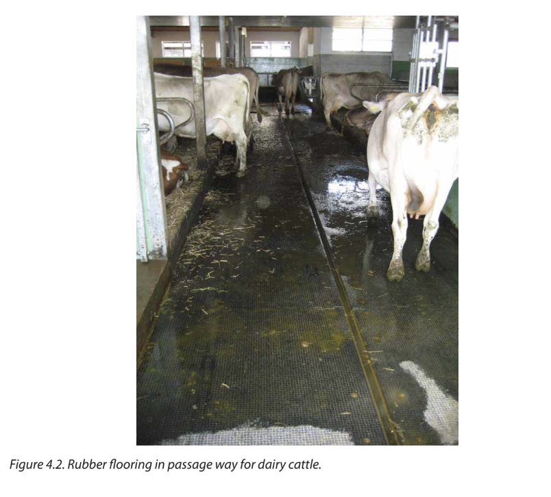 - Issues: Rubber mats can be too thin and hard, causing injuries. Soft coverings can reduce lameness and increase activity but may lead to lying in passageways if cubicles are inadequately designed. \n