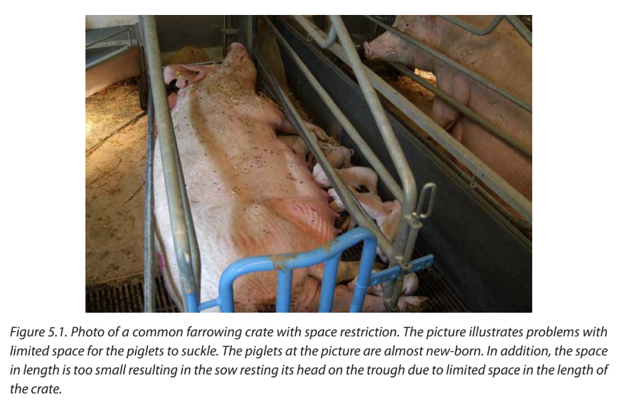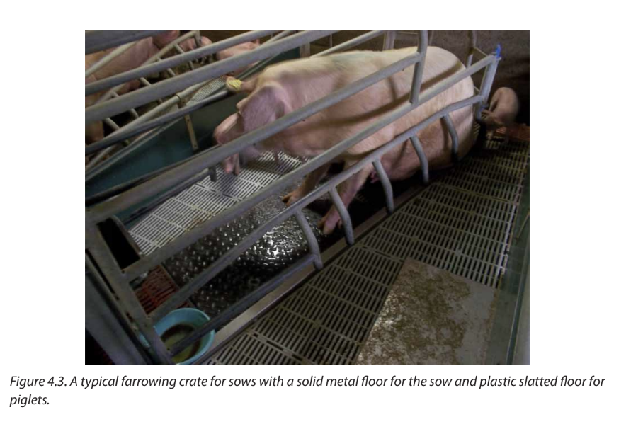 - Crated sows cannot express natural behaviors like nest building, leading to increased stress and stereotypies. \n\n\n\n