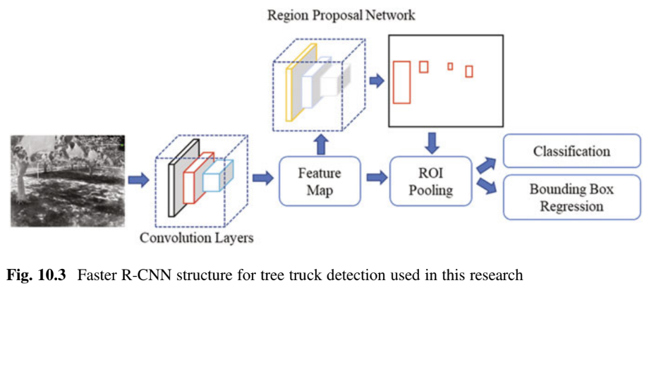 - Faster R-CNN (Region-based Convolutional Neural Networks): Faster R-CNN works by creating regional proposals from feature maps, then classifies these proposals as tree trunks or non-tree objects. It performs well in recognizing objects under varied conditions by utilizing a structured network with convolutional layers and region proposal networks (RPN). In orchard applications, this model strikes a balance between speed and accuracy. \n\n\n\n