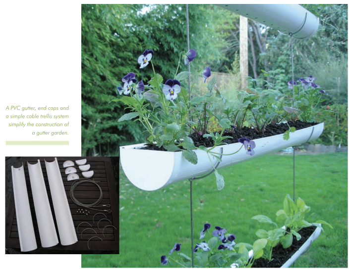 \n\n\n\nGutter gardens are becoming popular for those with narrow spaces. These creative vertical gardens make use of metal gutters (preferably copper or stainless steel) mounted on walls or arbors. Remember to drill drainage holes and line them with screening to prevent soil loss.