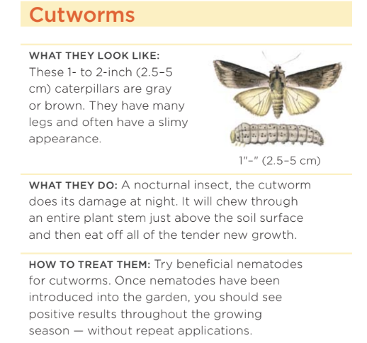\n\n\n\nThe passage also provides practical insect management tips, outlining various pests and the natural methods to control them. For instance, using beneficial nematodes, soap sprays, and neem tree extract can effectively manage beetles, aphids, and other pests, offering organic solutions to common garden problems.